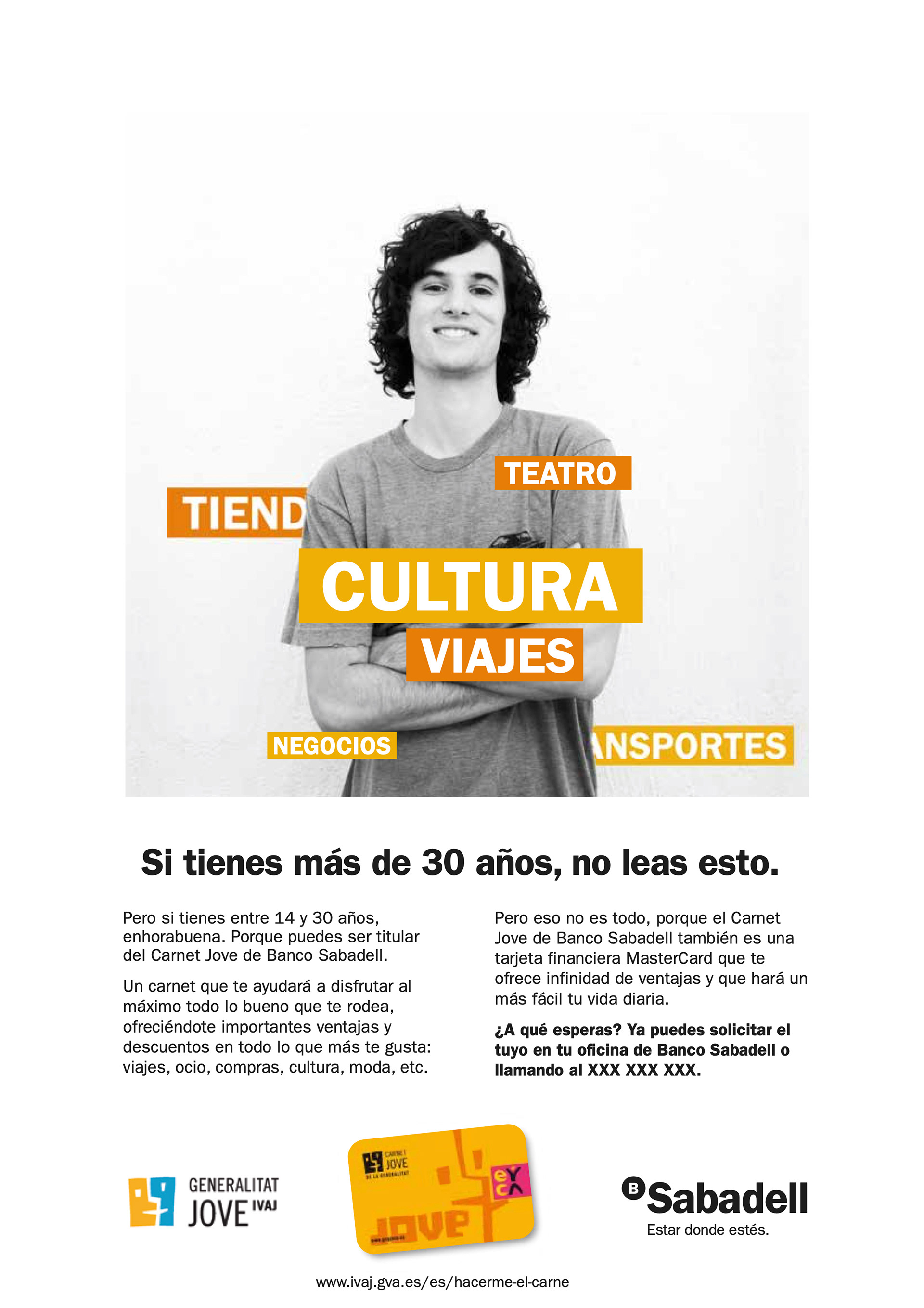 Campaña de lanzamiento y captación para el Carnet Jove de la Generalitat Valenciana, en asociación con Banc Sabadell y en primicia para sus clientes.