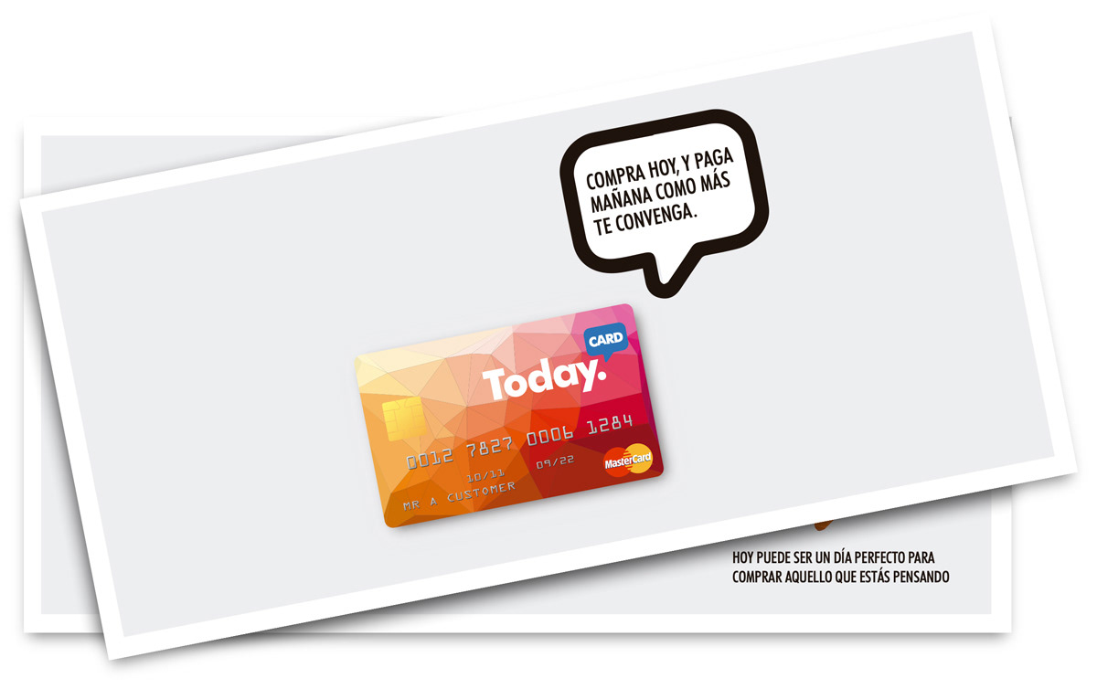 Diseño integral para la Tarjeta Today de Banco Sabadell Consumer: diseño de tarjeta, naming, identidad visual, concepto creativo y publicidad del nuevo producto.