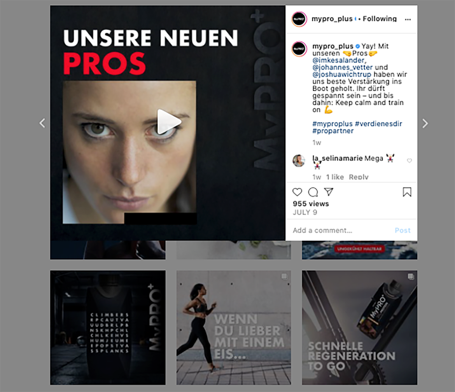 Lanzamiento en redes sociales (Alemania, Austria y Suiza) de MyPro, partiendo del concepto, estrategia y diseños creados en Barcelona. Creatividad: Equipo Remake Comunicación // Producción y medios BeAgency.